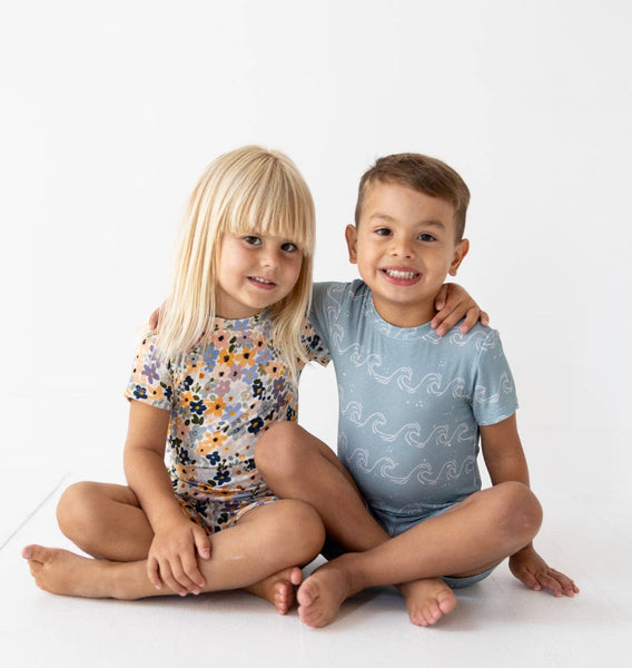 Dive into cozy comfort with the Make Waves Bamboo PJ Shorts Set! Crafted from a soft ribbed blend of bamboo and viscose, these two-piece pajamas feel gentle and breathable against even the most sensitive skin. Perfect for lounging or catching sweet dreams, they bring a playful touch to bedtime with their lightweight, airy fabric. Slip into softness and let your little one make waves in style and comfort all night long.